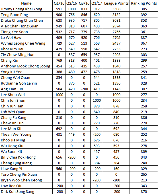 6) Chin Jun Han (1 win)